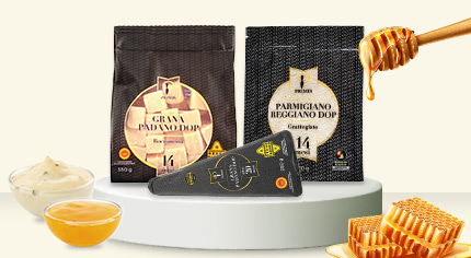 Contraddistinto dal bollino oro e accuratamente incartato a mano, il Parmigiano Reggiano D.O.P. Primis stagionato 30 mesi porta in tavola una delle eccellenze della gastronomia italiana.
